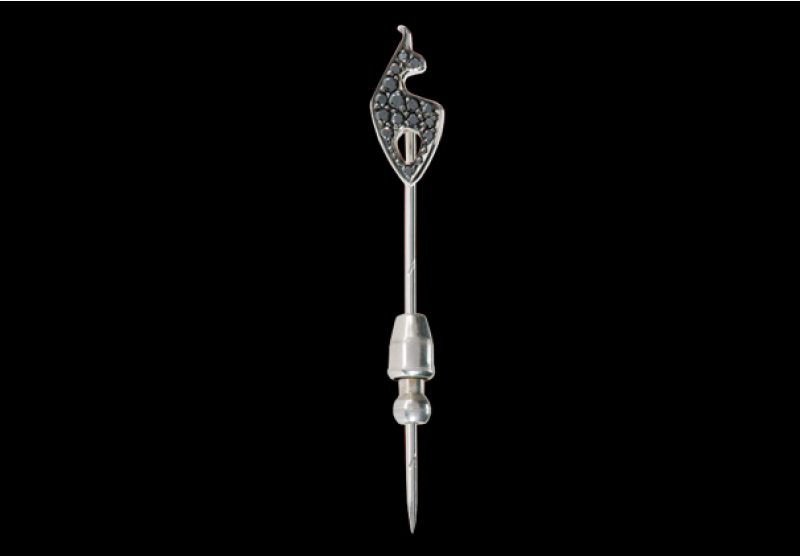 Das Kitz ist mit schwarzen Brillanten -.15ct. pavé gefasst.